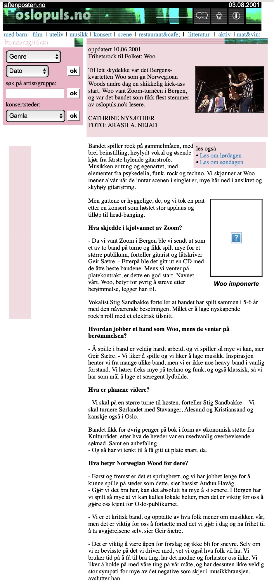 Woo is visiting their hometown Ørsta to play a live set at the new club scene Rust at the 24th of June. The show is a part of a NRK PETRE event, and artists like Skatebård, Uncle?s Institution and Datarock will also attend the show.